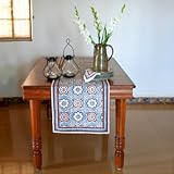 Product DescriptionUse our Decorative Blue Brown Dining Table Runner to set the mood or to add a touch of elegance to your table setting.The table runner is 18 inches wide and 120 inches long and is printed on preshrunk, superior grade, soft cotton and is exquisitely finished with neat double stitched hemsEach piece is handcrafted using intricately hand carved wooden blocks and is an original work of art distinguished by the work of the artisan, the particular lot of dye, and even varying weather conditions. Tonal variations are inherent to the block printing process and enhance the individuality, character and uniqueness of each creation.Inspiration for Ocean Breezes: