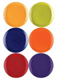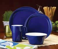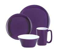 Collection comes in many bright, vibrant colorsThe 16-piece dinnerware set is available in several bold colors, including Rachael's signature Blue, Green, Orange, Purple, Red and Yellow.