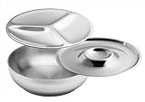 - Kraftware 3-piece entertaining set includes one 19-inch insulated stainless base bowl, one chip and dip top tray, and one 3-section top tray